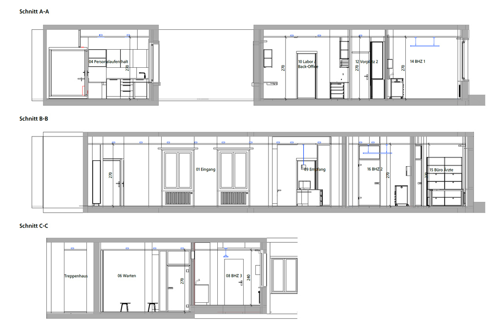Dr. Eichenberger und Dr. Blaser beauftragten uns direkt ihre HNO-Praxis neu zu gestalten. Ihre Forderung war einzig ein zusätzliches Behandlungszimmer unterzubringen.
