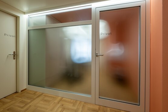 Dank unseres eingespielten Netzwerks gelang dennoch der Spagat zwischen "fliegender" Planung und Baubeginn. Das Bauamt Stans begleitete das Projekt von Beginn an konstruktiv, wodurch das Baugesuch bewusst schlank gehalten werden konnte. Mit dem Vertrauen aller Beteiligten und einer Auftraggeberin, die das mutige Farbkonzept von Anfang an mitgetragen hat, konnte der Umbau eines ehemaligen Büros – inklusive der Anpassung einer tragenden Wand – innerhalb von sieben Wochen erfolgreich realisiert werden.